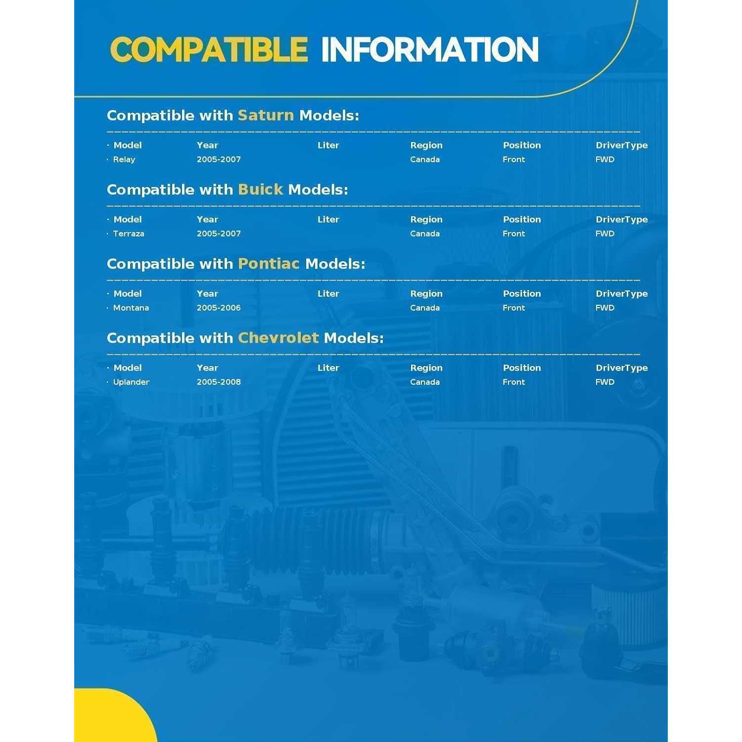 WIDELY COMPATIBLE: PHILTOP Complete Struts Replacement for 2005 2006 2007 Saturn Relay 2005 2006 Pontiac Montana 2005 2006 2007 2008 Uplander 2005 2006 2007 Buick Terraza. Meet OE Standards, please Comfirm our products are compatible with your car