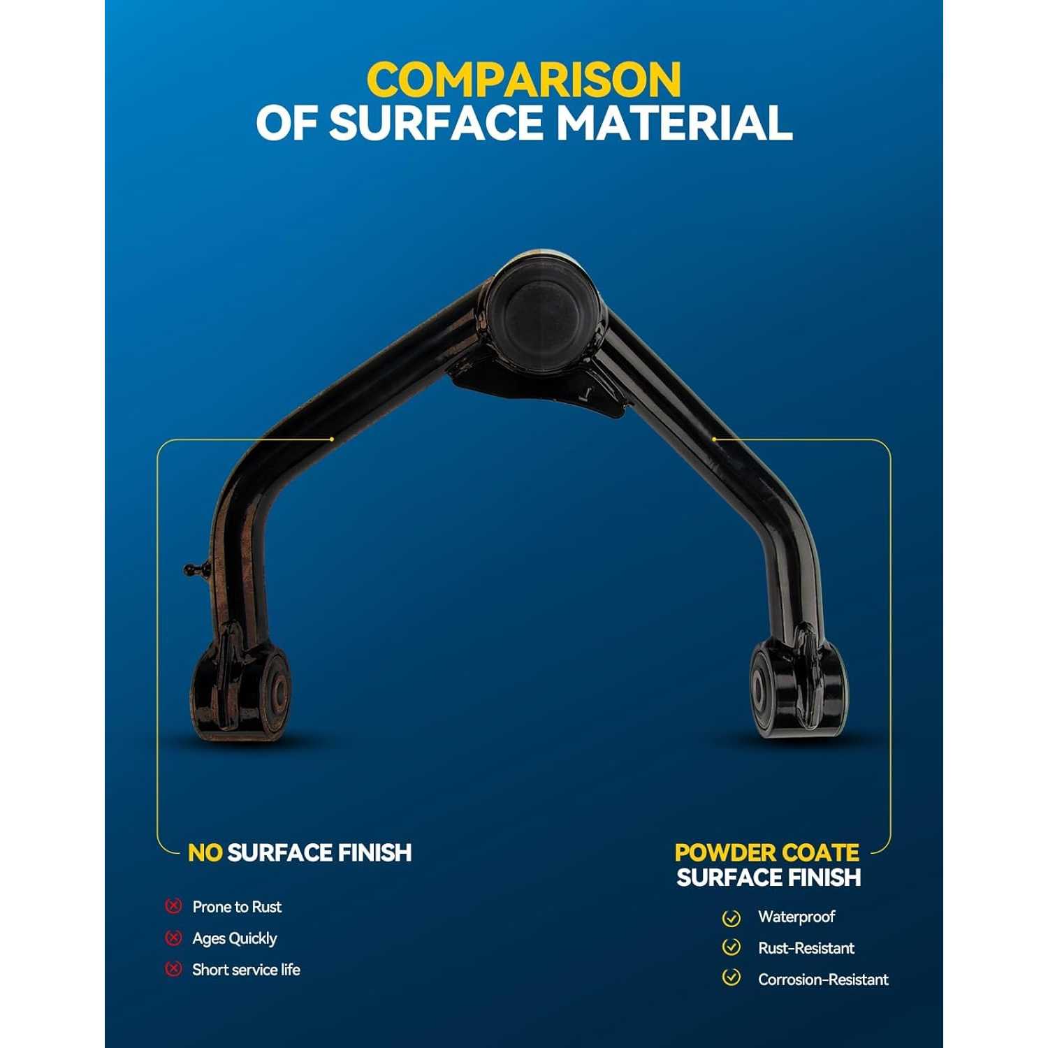 High Quality: Polishing and rust prevention; the anti-corrosion coating on the control arm can prolong the service life. All materials used for the control arm coating are environmentally friendly