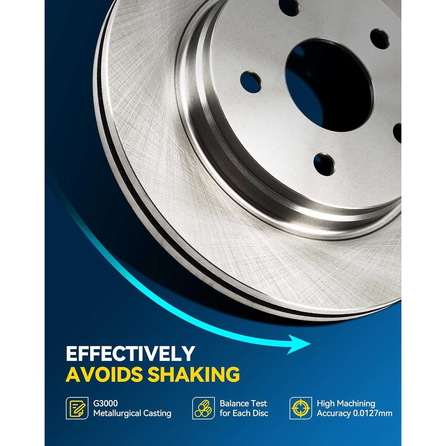 [Excellent Braking Efficiency]: Our brake rotor meet OEM specifications, ensuring reliability, durability and stability. They can respond to braking commands instantaneously, effectively reducing the braking distance and guaranteeing your driving safety.