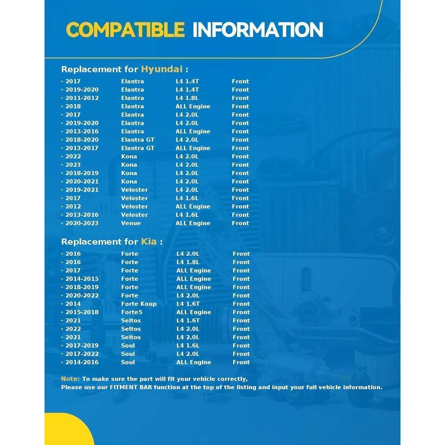 [Perfect Fitment]: Compatible with Hyundai Elantra 2017-2020, fit for Elantra Coupe 2013-2014, fit for Elantra GT 2013-2017/2019-2020, Kona 2018-2021, Compatible with Veloster 2012-2020, Venue 2020-2021; Compatible with Kia Forte 2014-2019, Forte Koup 2014-2017, Forte5 2014-2018, Soul 2017-2019---Front Left and Right, Driver and Passenger Side