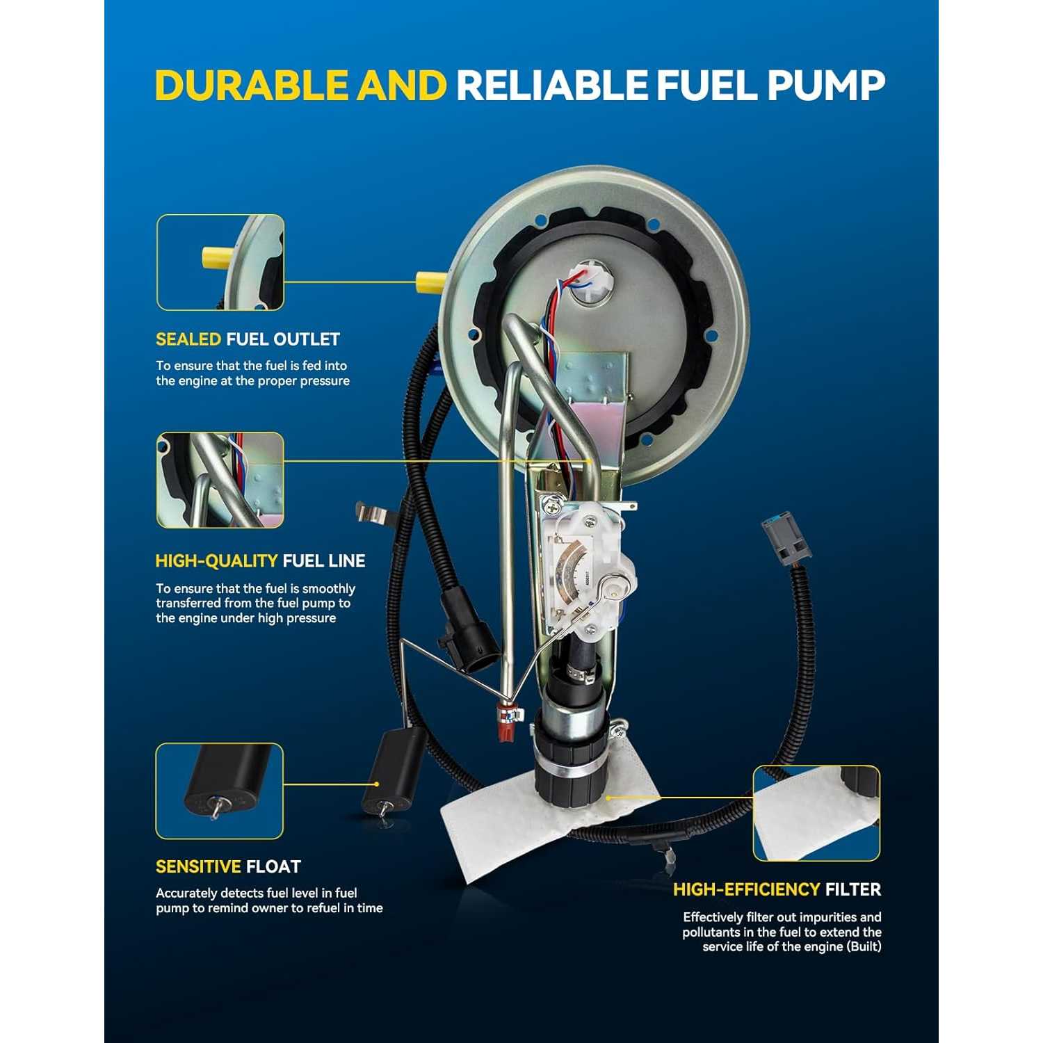 [Made of high performance POM raw material]: All parts are strictly manufactured to meet or exceed OEM performance requirements in terms of manufacturing and materials. All plastic parts are made of imported high performance POM raw materials, and the module adopts the most mature fuel pump structure, which is ethanol resistant, more efficient and longer service life.