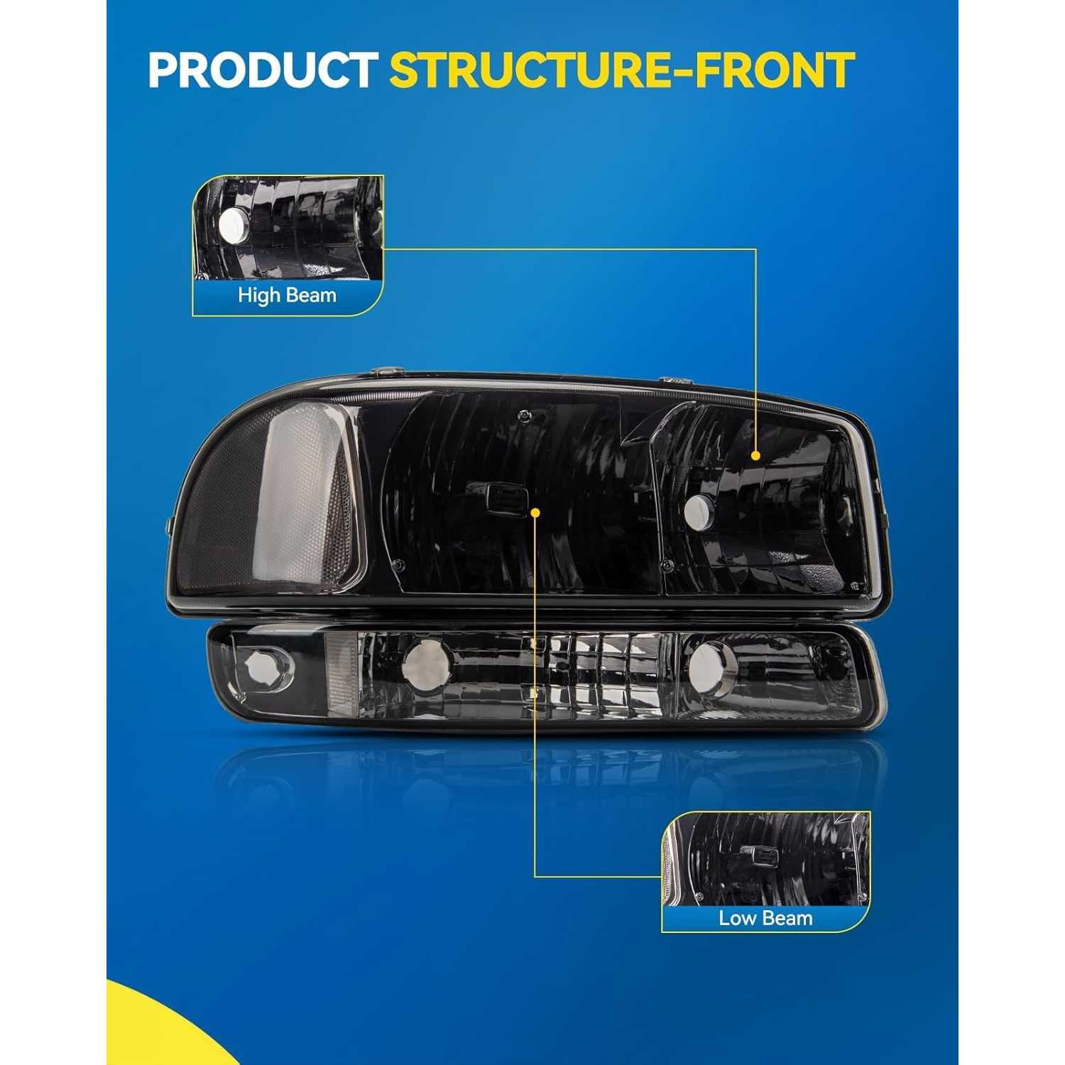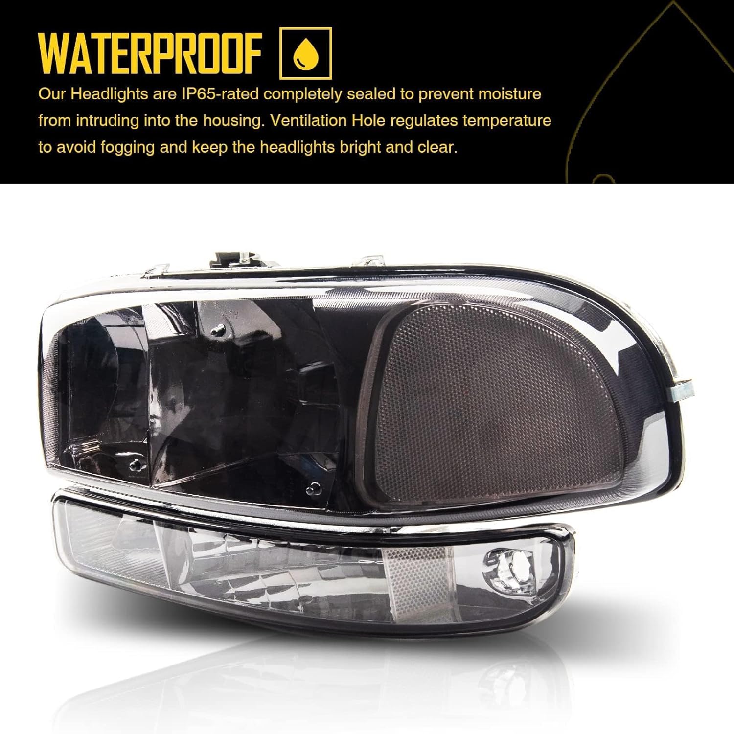 (Vehicle Compatibility) Designed to fit for 1999-2006 Sierra 1500, 2000-2006 Yukon/Yukon XL 1500, 2007 Sierra 1500 Classic. High/Low Beams and 4157NA Signal Bulbs (Bulbs not included)