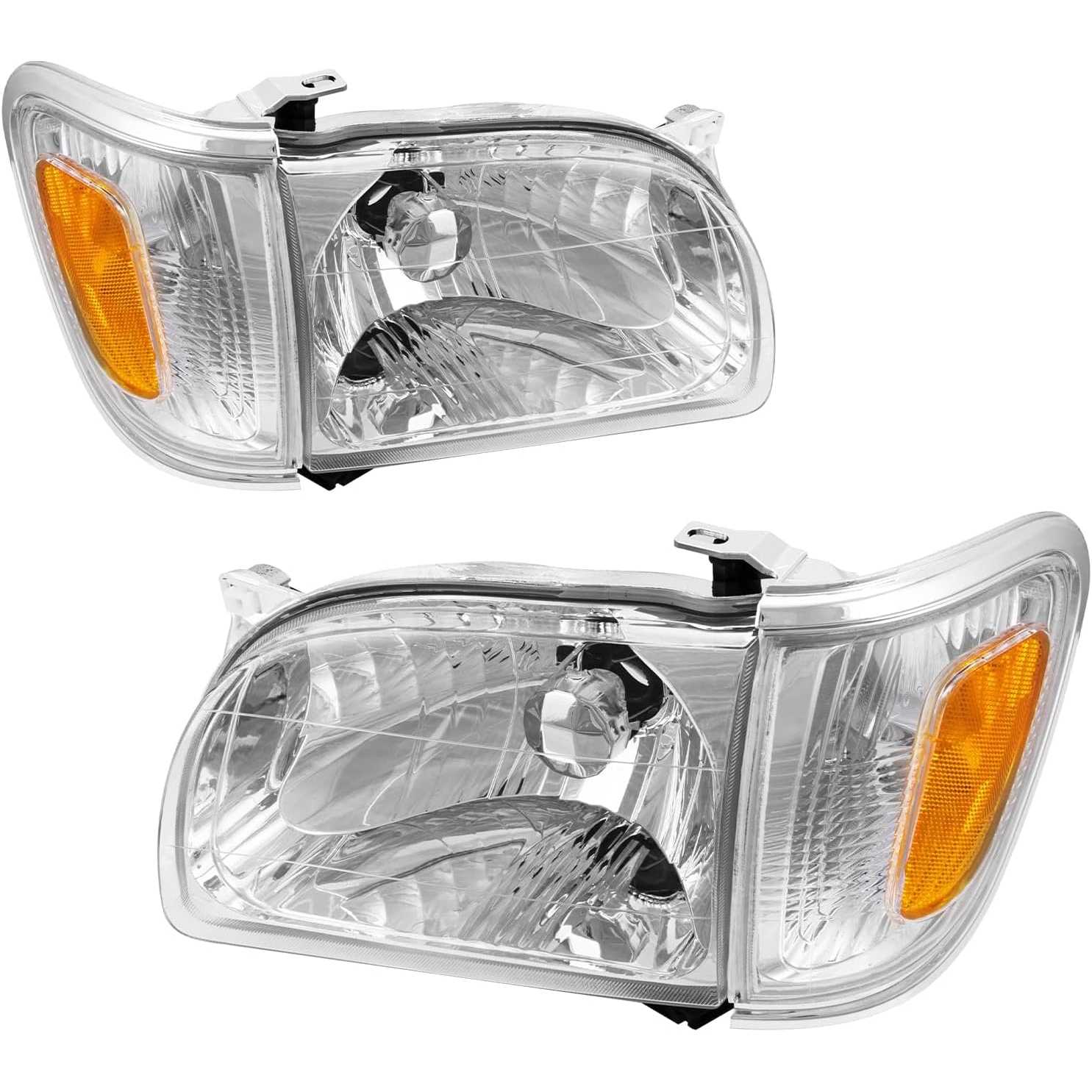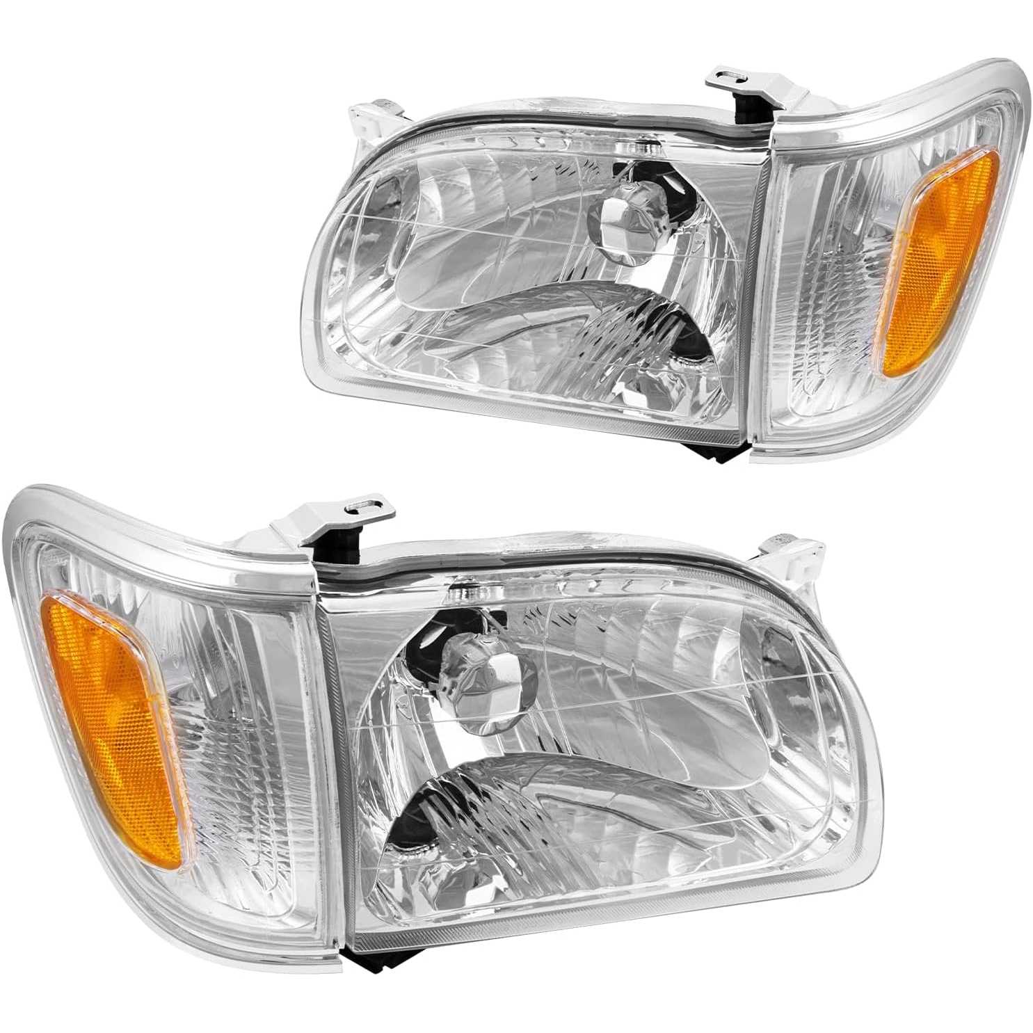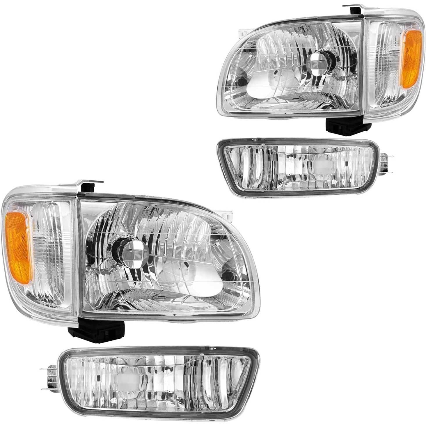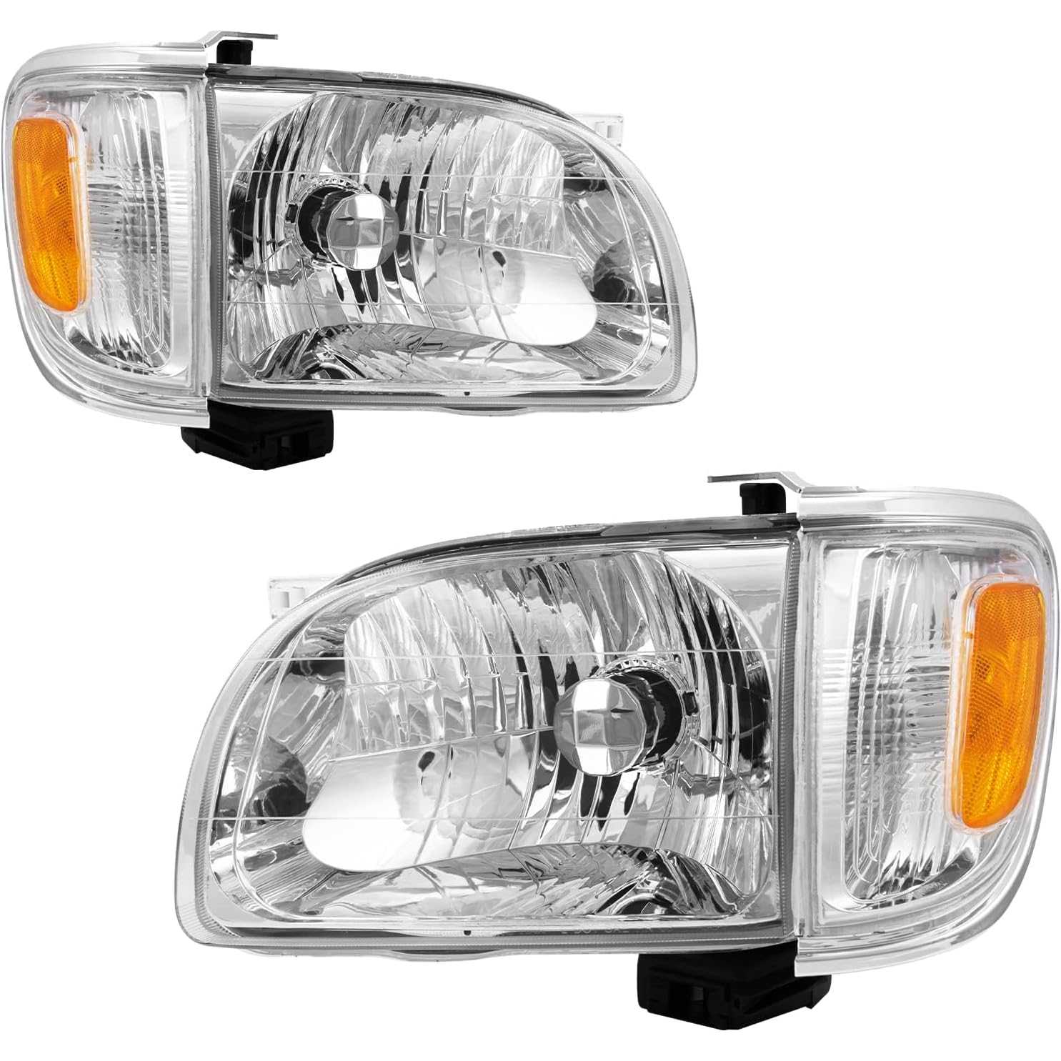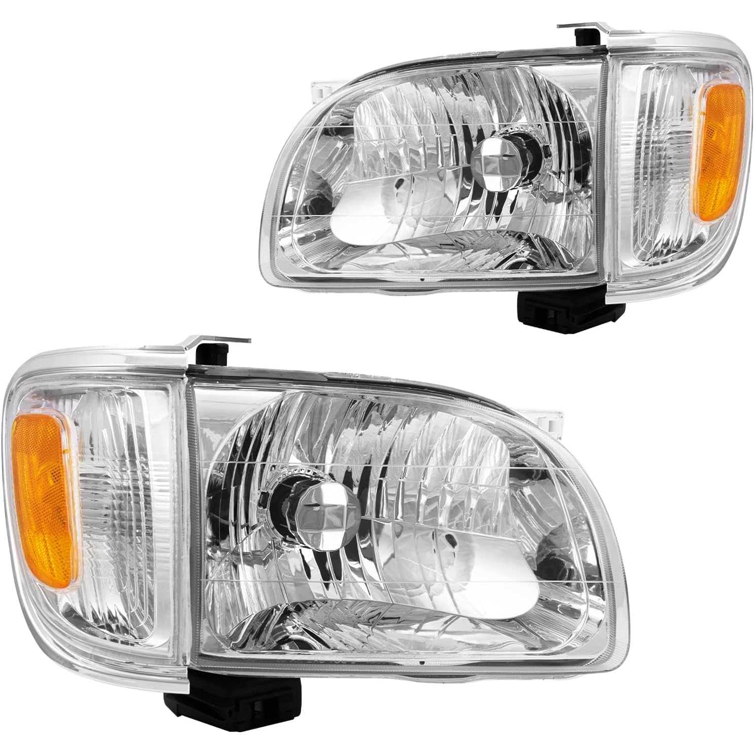 PHILTOP Headlight Assembly Replacement for Tacoma 2001-2004, Amber Headlamp Reflctor Clear Lens Chrome Housing