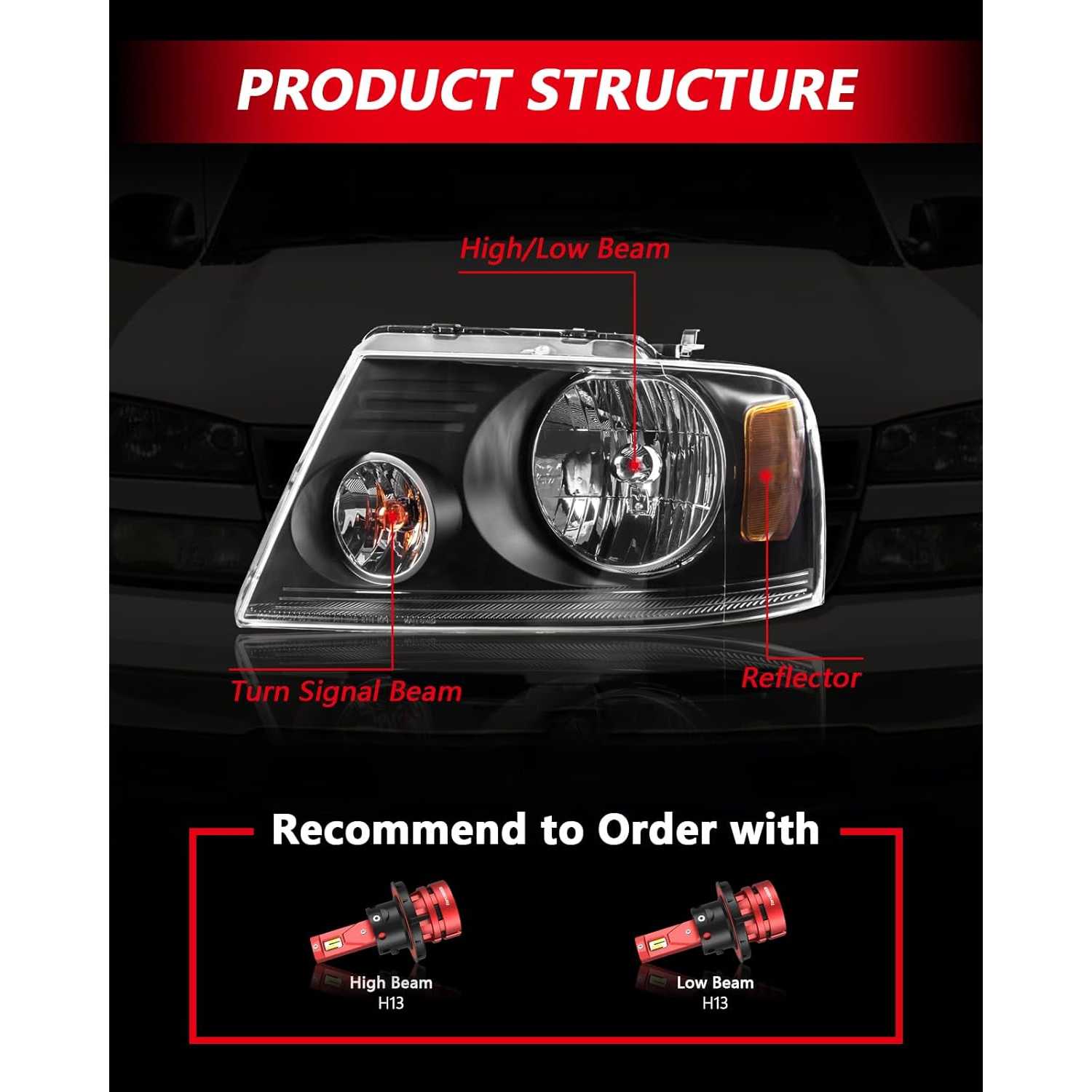 [Vehicle Compatibility] This headlight assembly is designed specifically for 2006 Mark LT, 2004 2006-2008 F-150 ,Please verify vehicle compatibility using the provided fitment guide at the top of the page