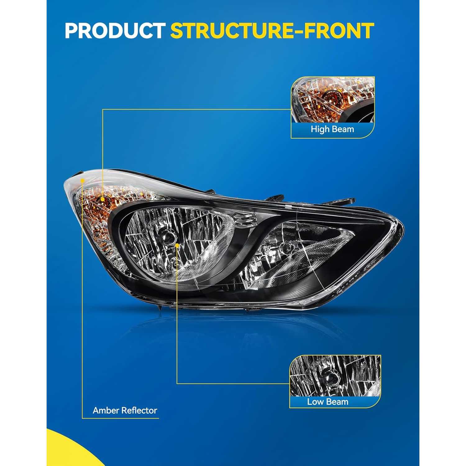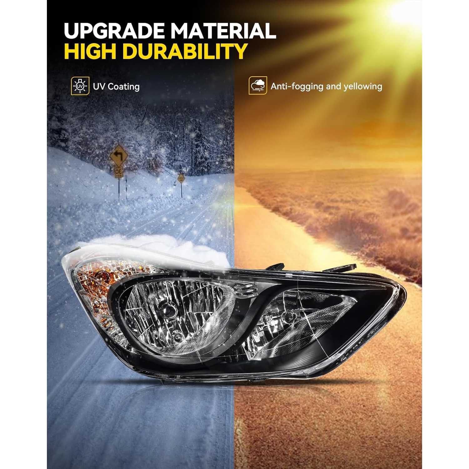 [Vehicle Compatibility] This headlight assembly is designed specifically for 2011-2013 Elantra ,Please verify vehicle compatibility using the provided fitment guide at the top of the page
