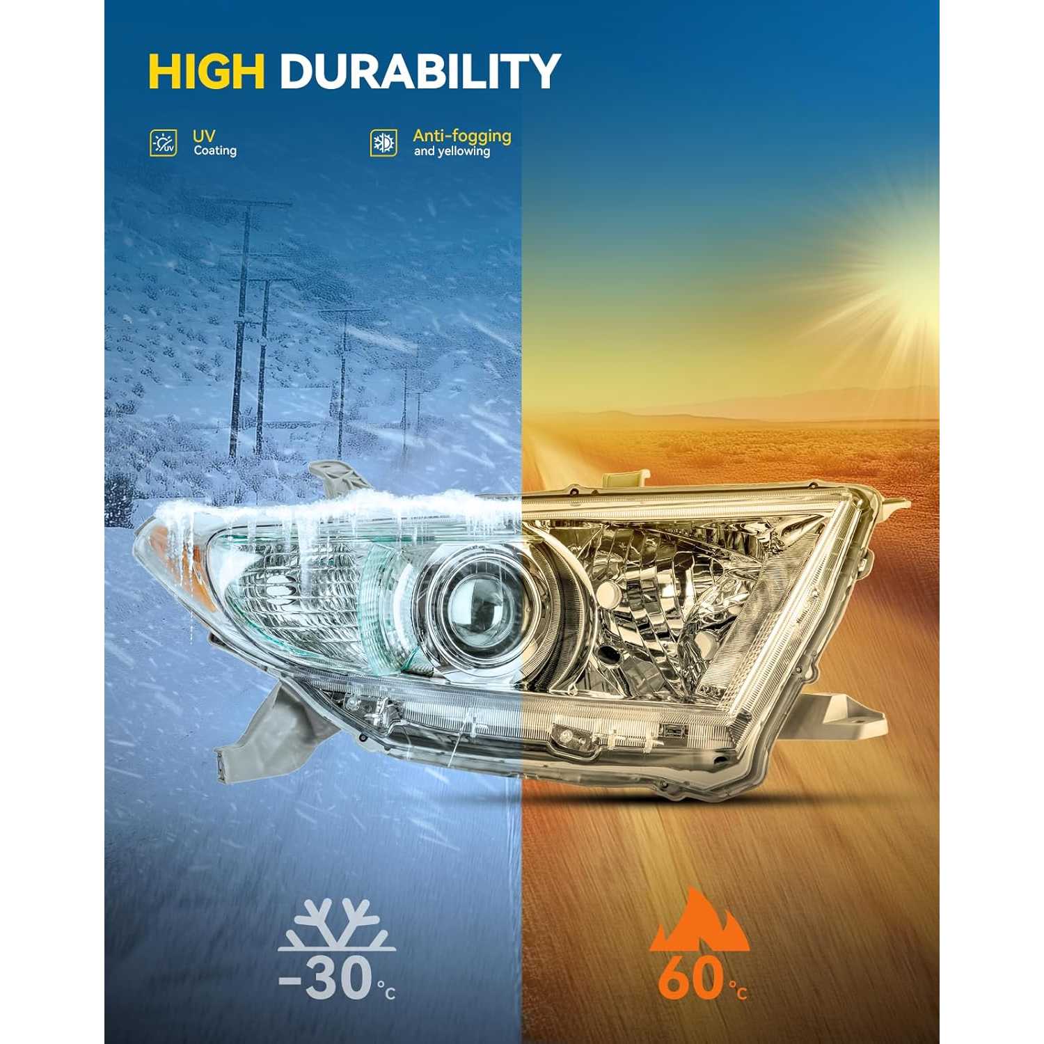[Vehicle Compatibility] This headlight assembly is designed specifically for 2011-2013 Highlander ,Please verify vehicle compatibility using the provided fitment guide at the top of the page