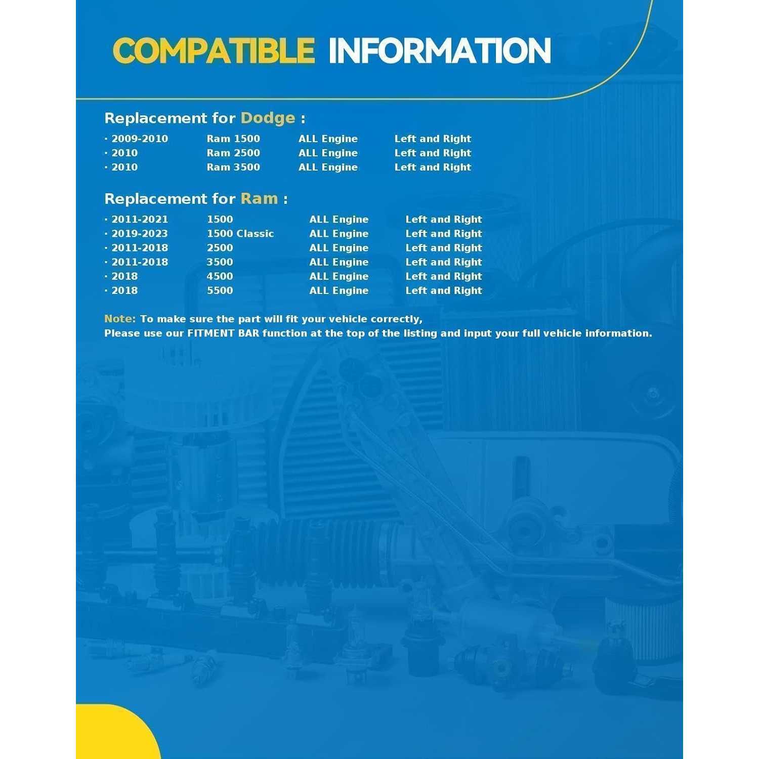 [Vehicle Compatibility] This headlight assembly is designed specifically for 2011-2018 2500, 2011-2018 3500, 2019-2023 1500 Classic, 2009-2010 Ram 1500, 2011-2021 1500, 2010 Ram 3500, 2010 Ram 2500, 2018 4500, 2018 5500 ,Please verify vehicle compatibility using the provided fitment guide at the top of the page