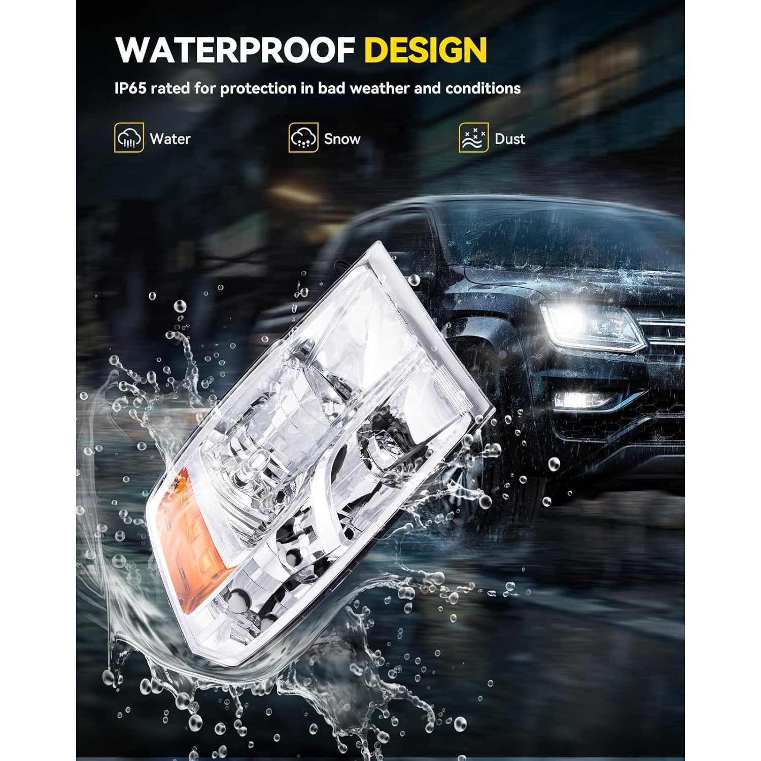 [Enhanced Brightness & Safety] High Light Transmission PC plastic reflects 98% of the light, providing superior brightness for safer driving at night and in adverse weather conditions. Ensure better visibility and improve your driving safety.Metal parabolic reflectors provide more light output for wider, smoother beams. Side microprism reflectors let oncoming vehicles or passersby quickly notice you at night, keeping you and others safe while driving