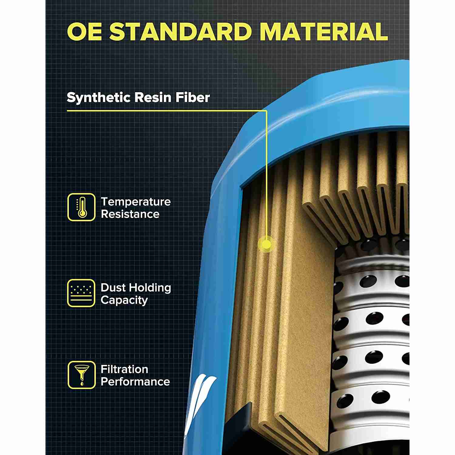 99% filter ability: a special synthetic resin fiber creates a proprietary filter media that captures 99% of dirt particles. Helps protect against engine wear by screening out abrasives, such as carbon, sand, dust and bits of metal before they can get into your oil, enhanced efficiency. Proven protection for up to 10,000 miles