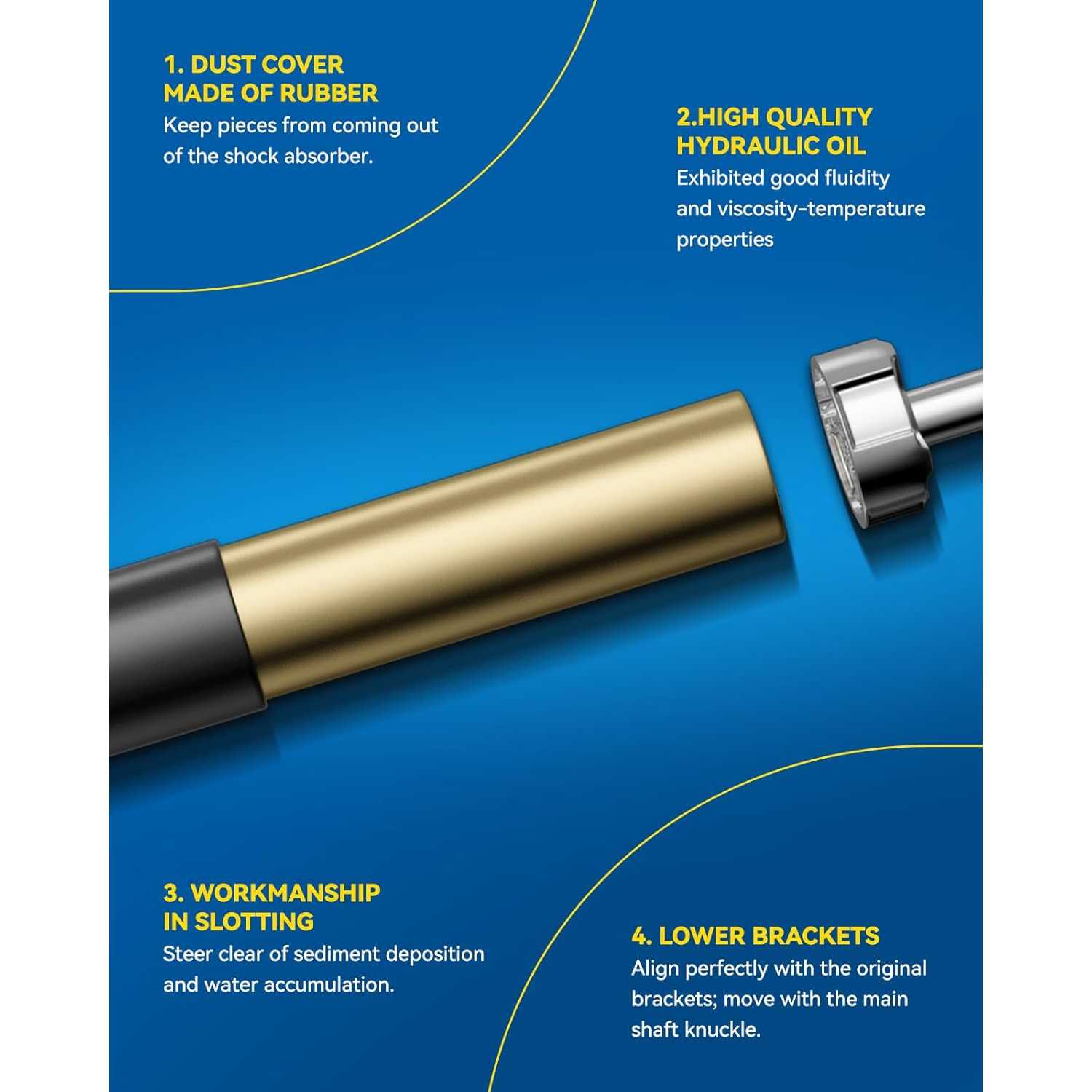 Outstanding Quality: Shock absorbers are designed with oil seals and rugged dust caps to protect against impact, leakage and distortion. High-quality steel construction ensures that each coil spring is precisely calibrated to meet OE specifications for added durability.