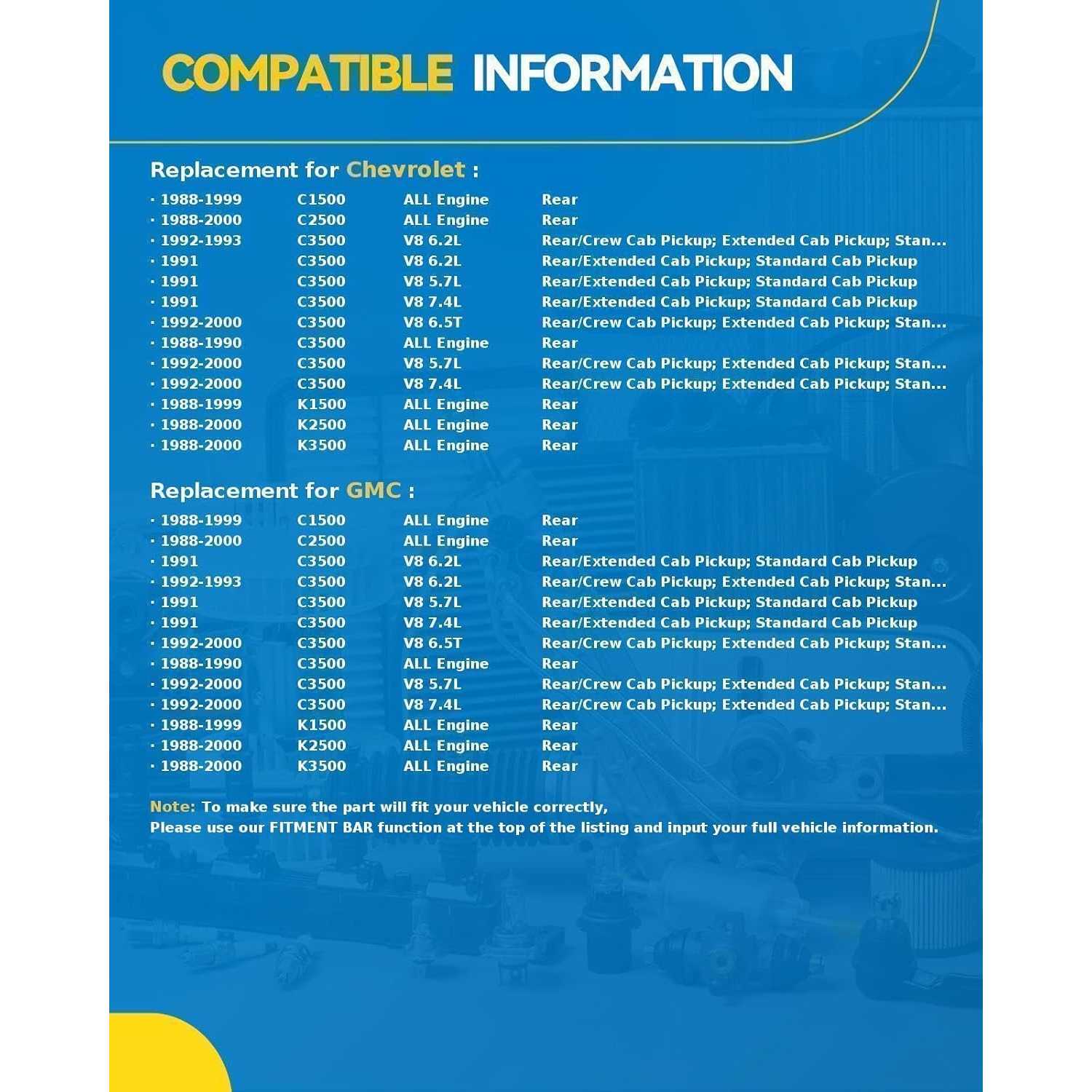 • Vehicle Fitment :2x Rear Strut Shock Absorber - 32225 Compatible with 1988-1999 C1500 1988-1999 K1500 1988-1999 GMC C1500 1988-2000 K2500 1988-1999 GMC K1500 1988-2000 C2500 1988-2000 K3500 1988-2000 C3500 1988-2000 GMC K2500 1988-2000 GMC K3500 1988-2000 GMC C2500 1988-2000 GMC C3500