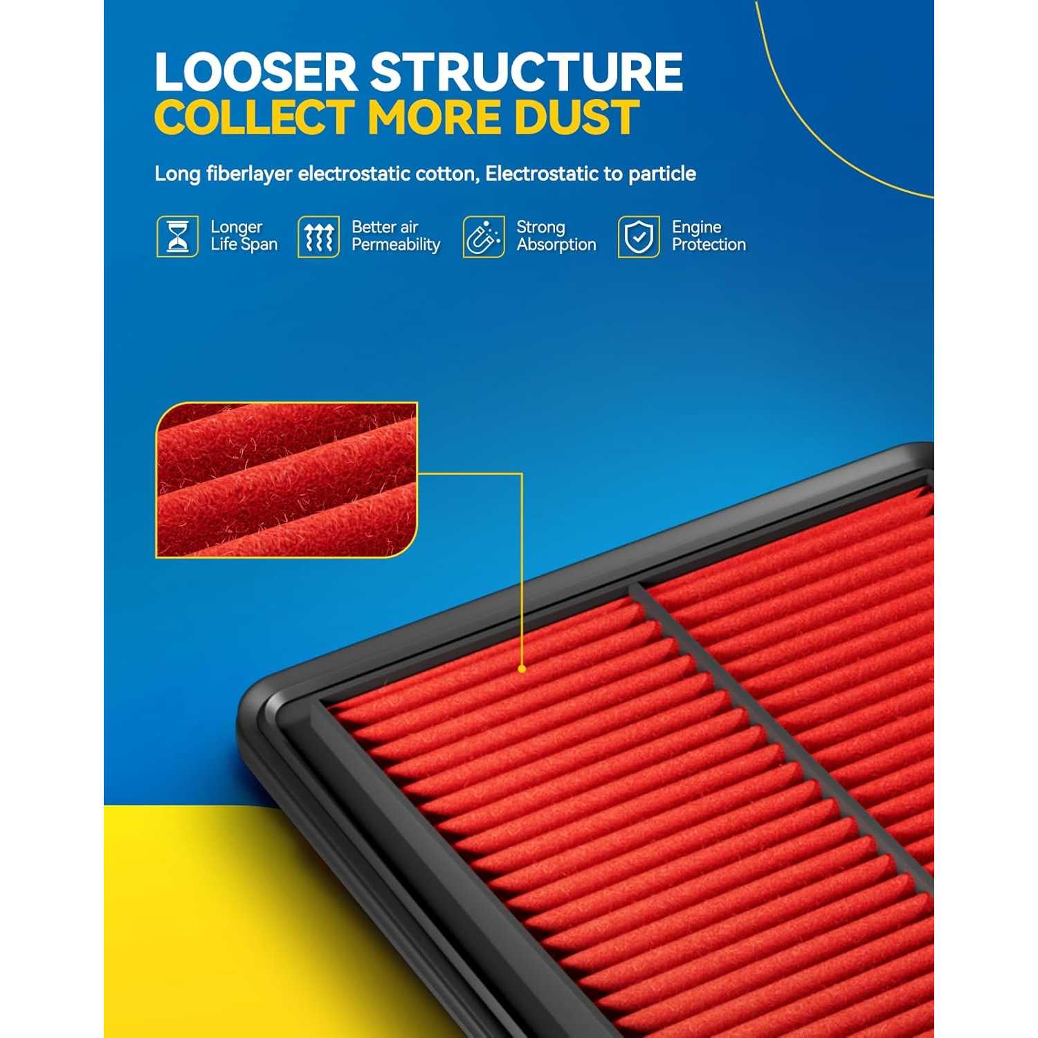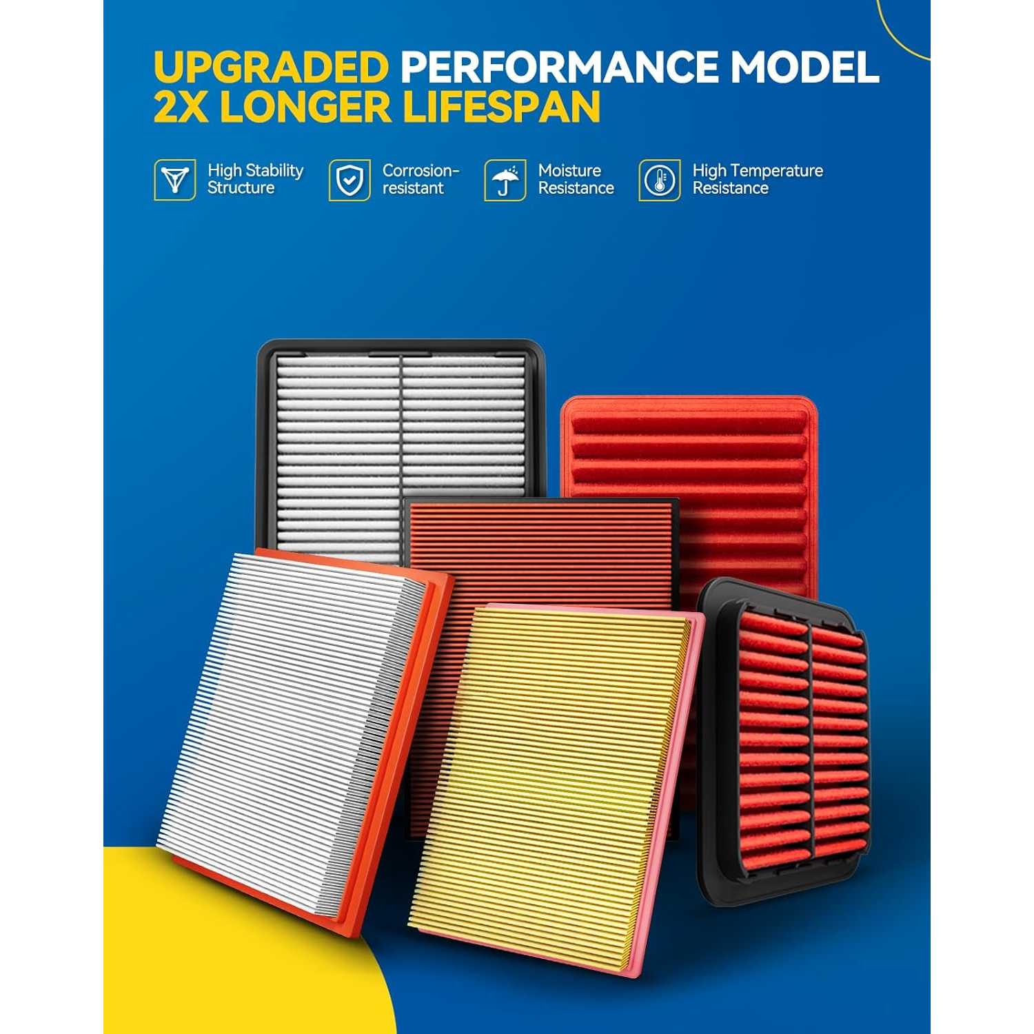 [30% Longer Life]: PHILTOP upgraded air filter has higher filtration performance and longer service life due to more robust construction and one more layer of filter paper than regular models