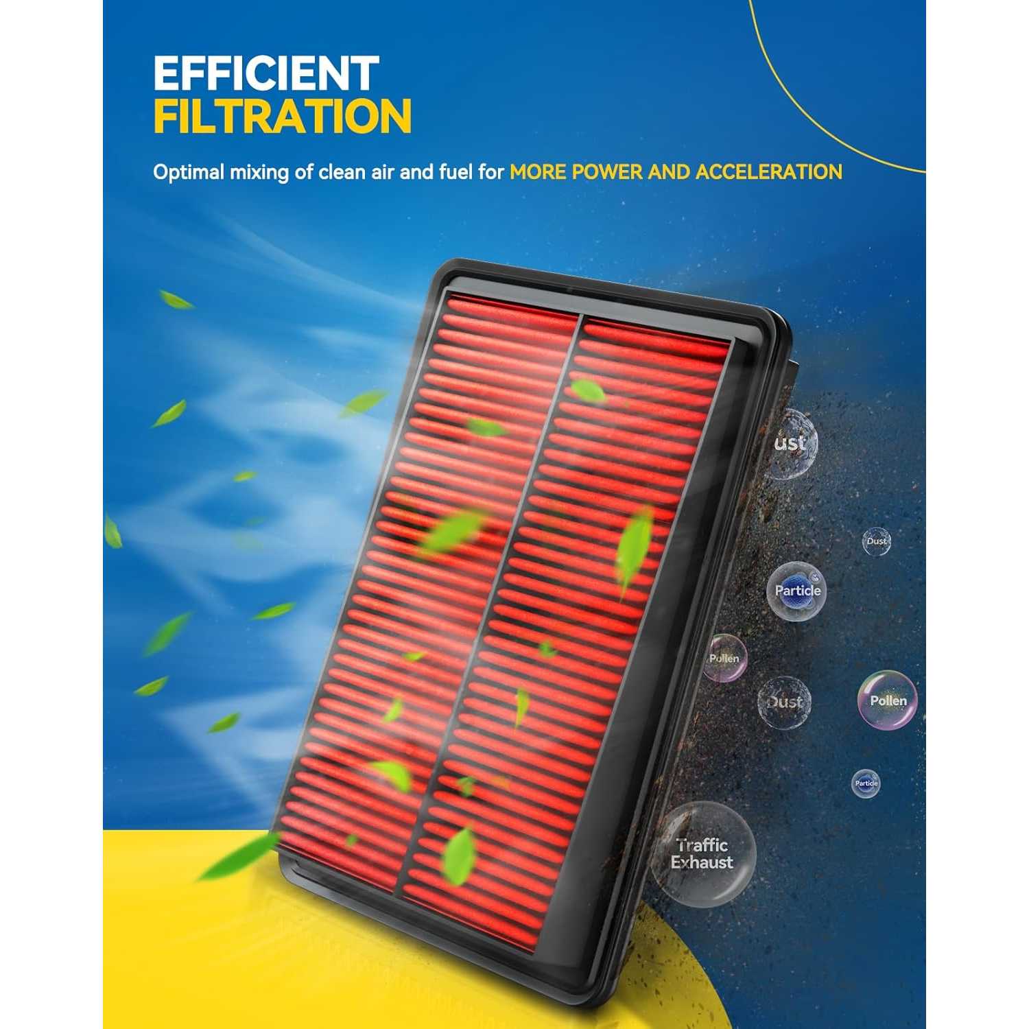 [High efficiency filtration]: PHILTOP upgraded air filters have a very higher filtration efficiency, typically over 99.8%, ensuring that the engine draws in clean air. This prevents engine wear and optimizes performance